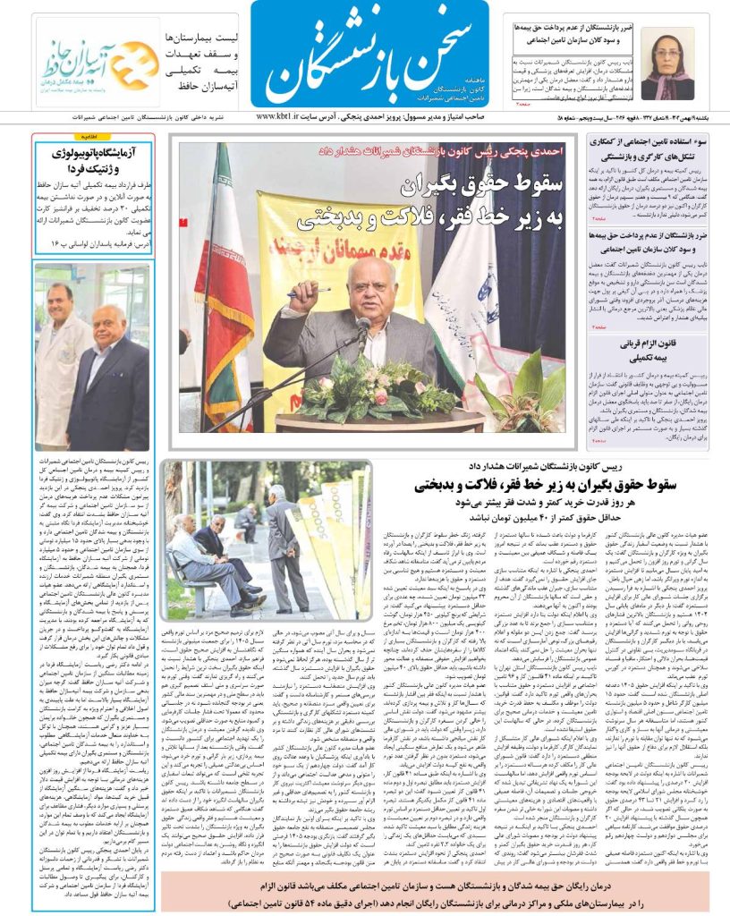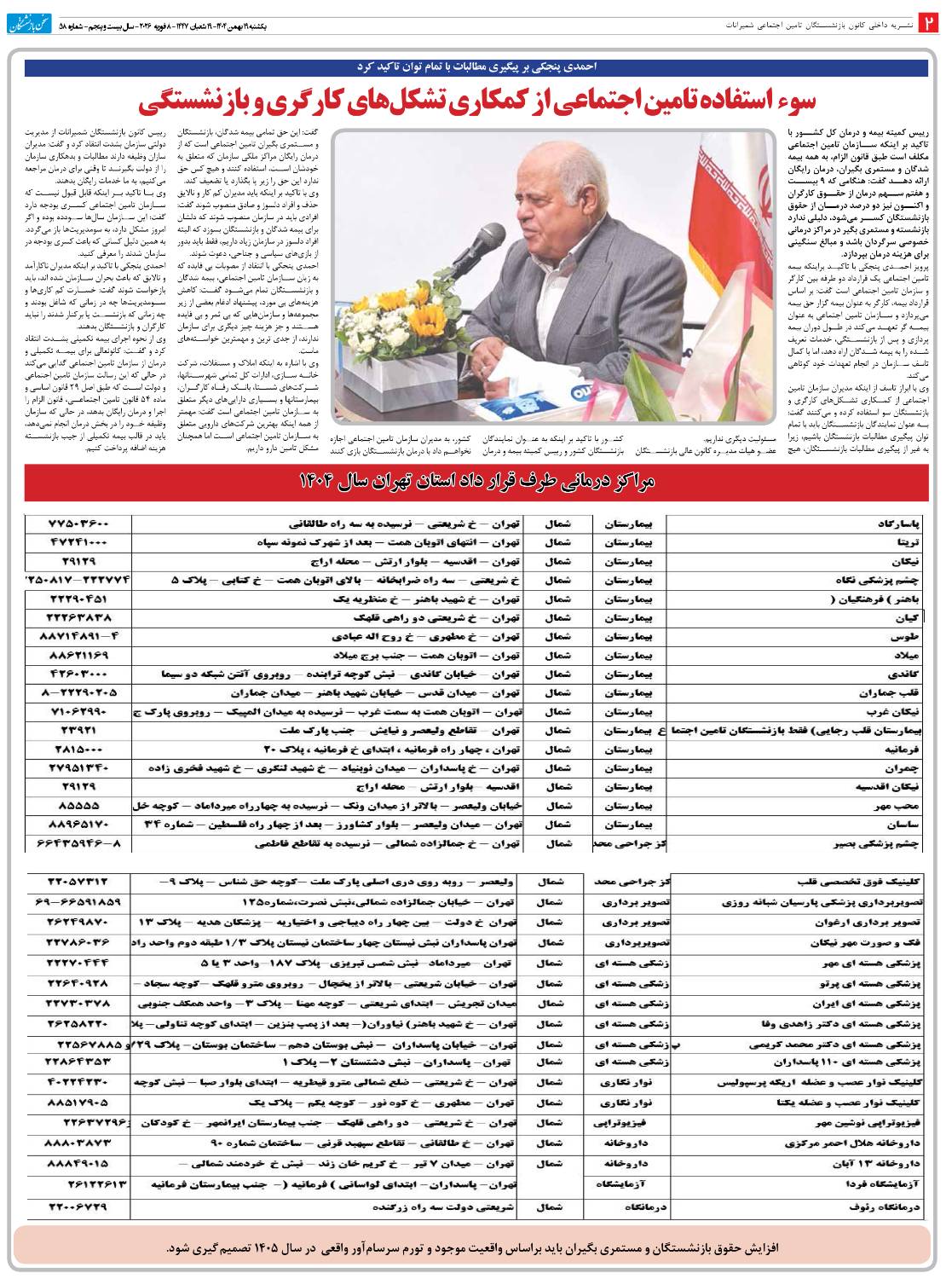 او افزود:«چند بیمارستان بزرگ در چند شهر ساخته شده، اما حتی آنها جوابگوی همان شهر هم نیستند. تامین اجتماعی در بسیاری از استانها حتی درمان ملکی نرمالی ندارد. میلیونها بازنشسته در شرایط بحرانی درمانی به حال خود رها شدهاند