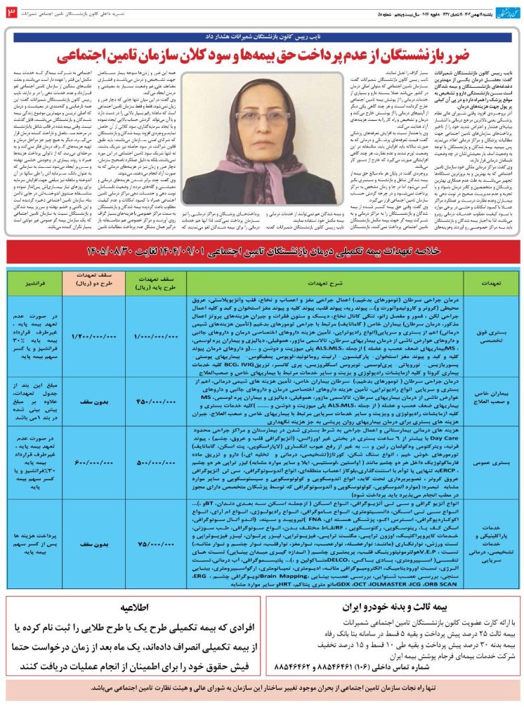 عضو هیات مدیره کانون عالی کارگران بازنشسته تأمین اجتماعی کشور هشدار داد که بیمه تکمیلی بازنشستگان یک حق مسلم و ضرورت حیاتی است و اگر سازمان توان اجرای قانون را ندارد، مسئولان باید کتبا اعلام کنند و مسئولیت آن را بر عهده بگیرند